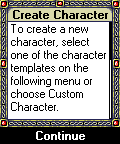 Choosing one of the three character templates is the fastest method, as each automatically starts the new character with a well-balanced assortment of attributes and equipment.