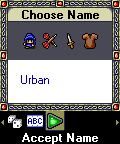 Once the player is satisfied with the character's name, he must select the [Accept Name] menu item and press the [SELECT] key to continue.