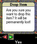 The player must select [Yes] from the Overwrite menu to proceed with the creation of a new character.  Selecting the [No] menu item or pressing the [CLR] key will return the player to the Main Manu.