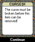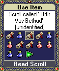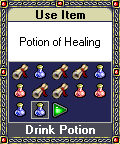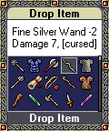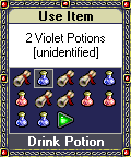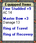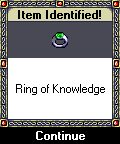 When an item is found lying on the ground, the PC can pick the item up and add it to his inventory simply by walking over it.  When an item is added to the PC's inventory, a short description of the item is displayed on the status bar, but only for a limited time.